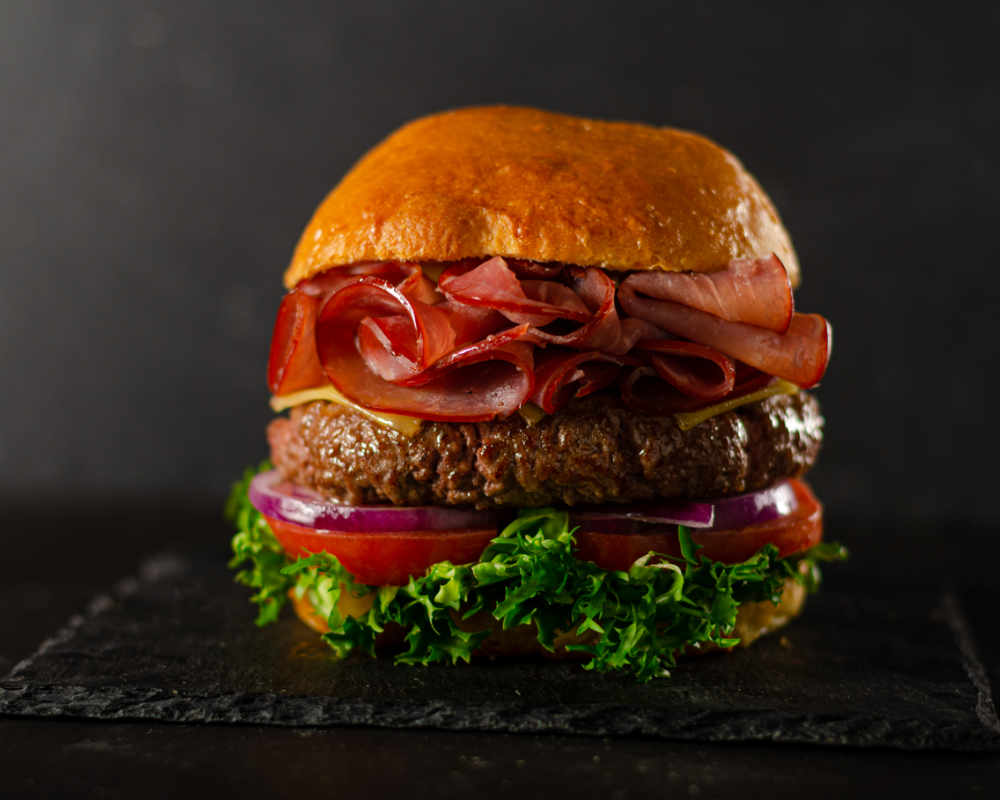 A juicy, grilled beef patty served on a soft toasted bun with crisp lettuce, ripe tomatoes, and a tangy sauce. This classic burger is an all-time favorite that satisfies cravings with each hearty bite.